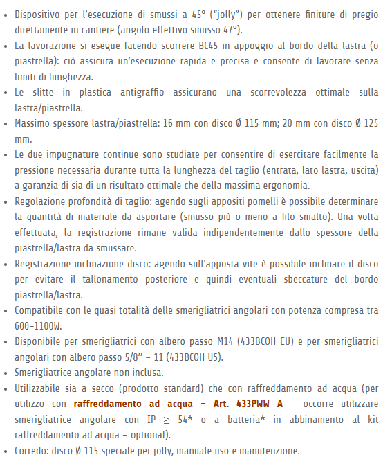 DISPOSITIVO PER L'ESECUZIONE DI SMUSSI A 45° CON DISCO DIAM. 115.