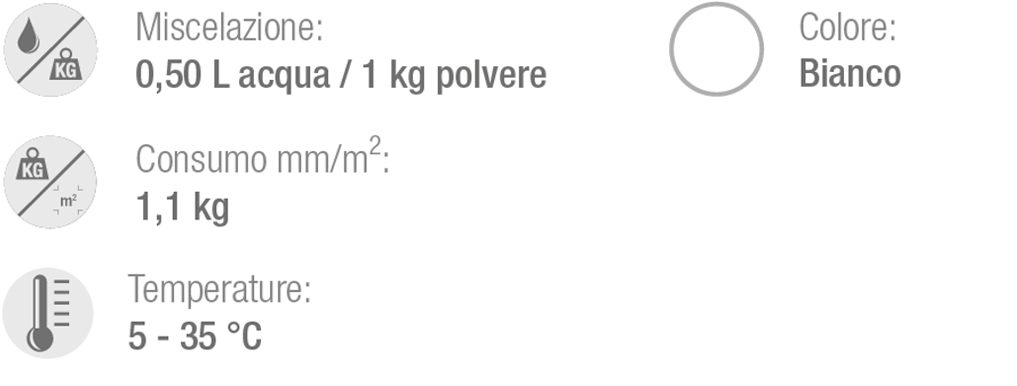 - Lungo tempo di lavorabilità fino a 6 ore, mentre il tempo di essiccazione rimane rapido, quanto uno stucco tradizionale.