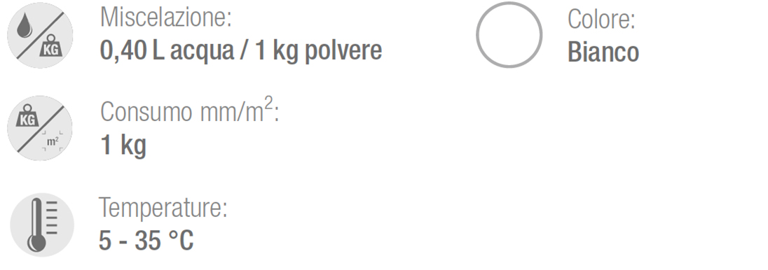 - Essiccazione rapida, spessori fino a 5 mm (in condizioni climatiche e di sottofondo standard) sono asciutti e pronti per la verniciatura in sole 3 ore.