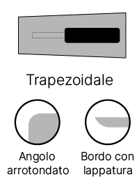 Frattone in acciaio inox saldato lama lappata lucidata a specchio trapezoidale con angoli arrotondati. Pronta per lucidatura marmorino manico Sintesi.