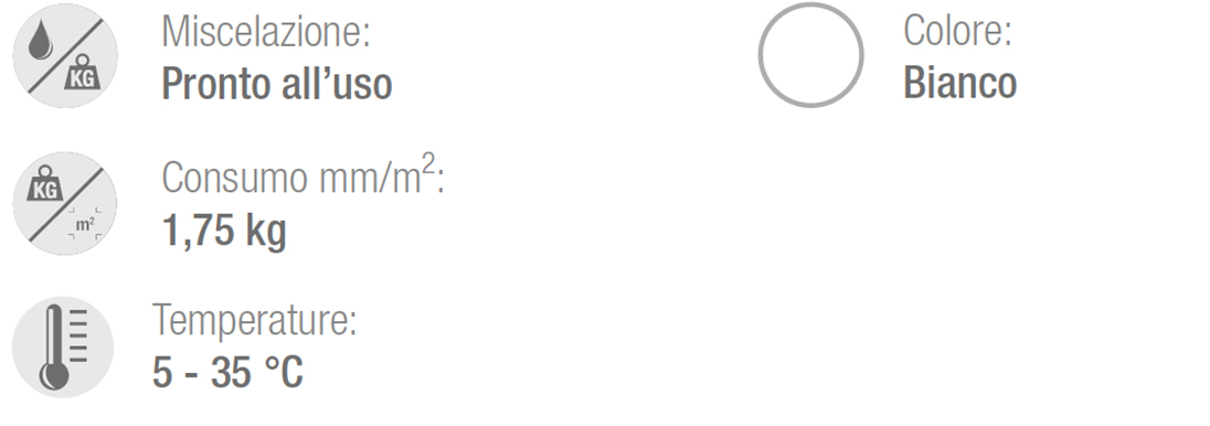 - Eccellente aderenza ai supporti, anche direttamente sopra vecchie pitture ben coese.